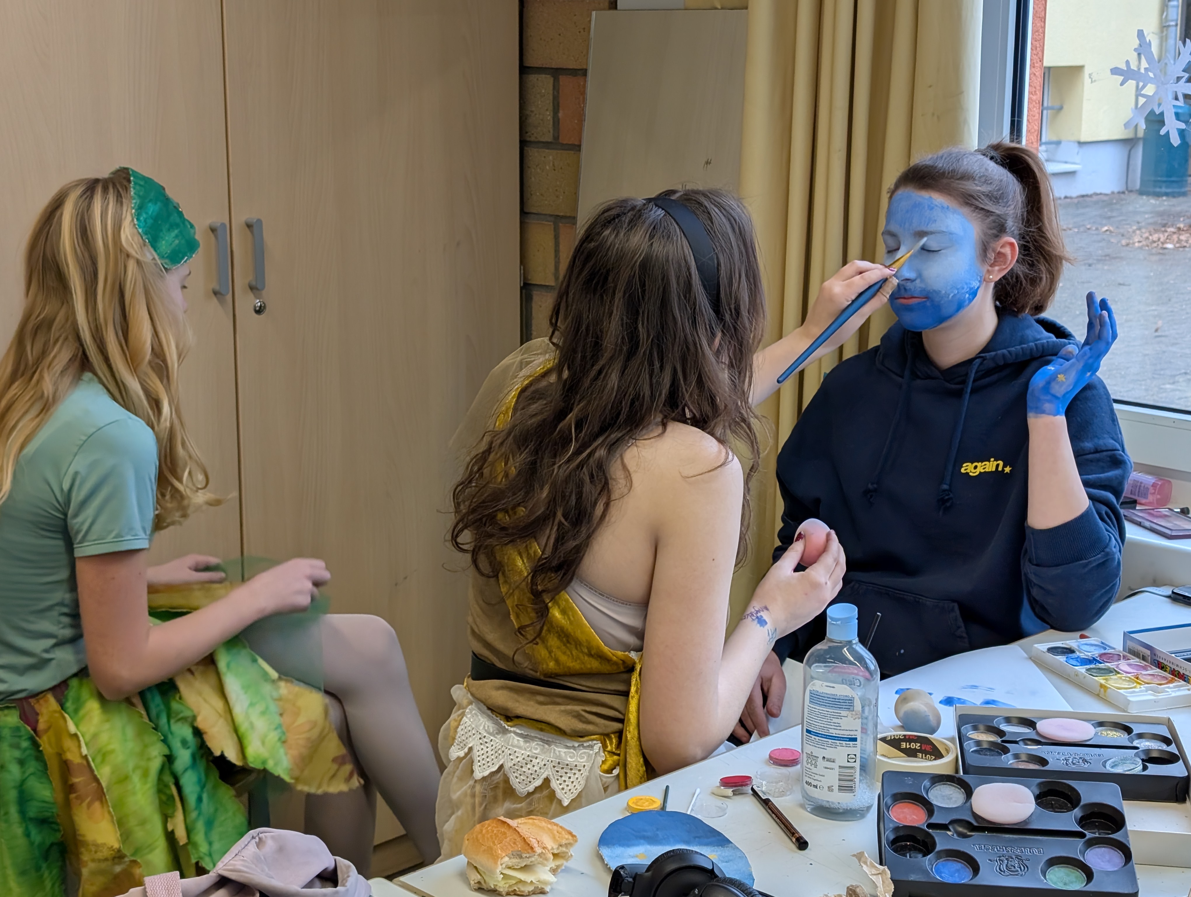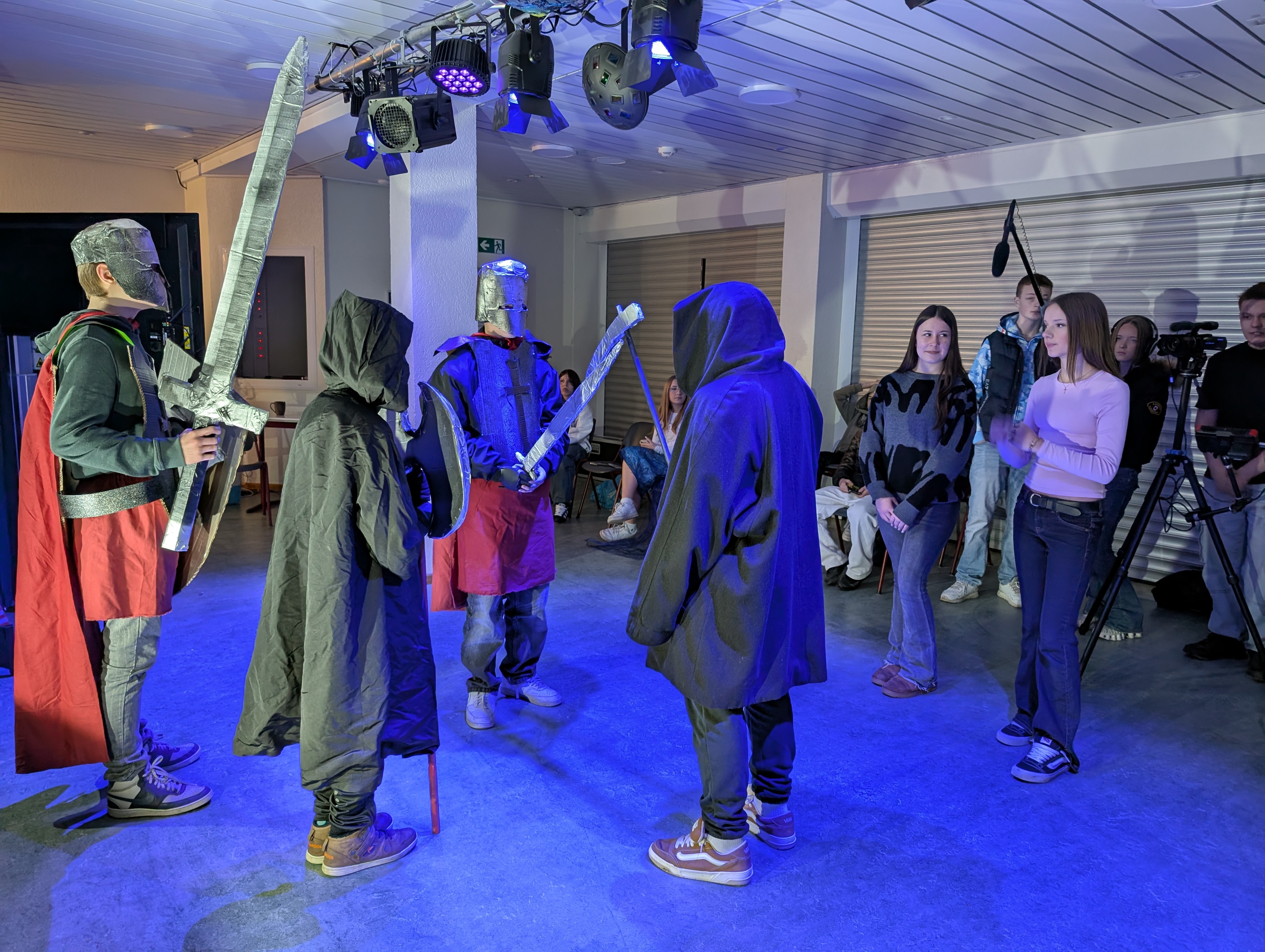 Natürlich brauchte es eine Filmcrew, die lernte, wie man mit Kamera und Mikrofon arbeitet, wie man die Figuren ins rechte Licht setzt und die Schauspieler in der Maske schminkt. Dank der professionellen Einführung konnten die Schülerinnen und Schüler hier sehr schnell selbstständig arbeiten.