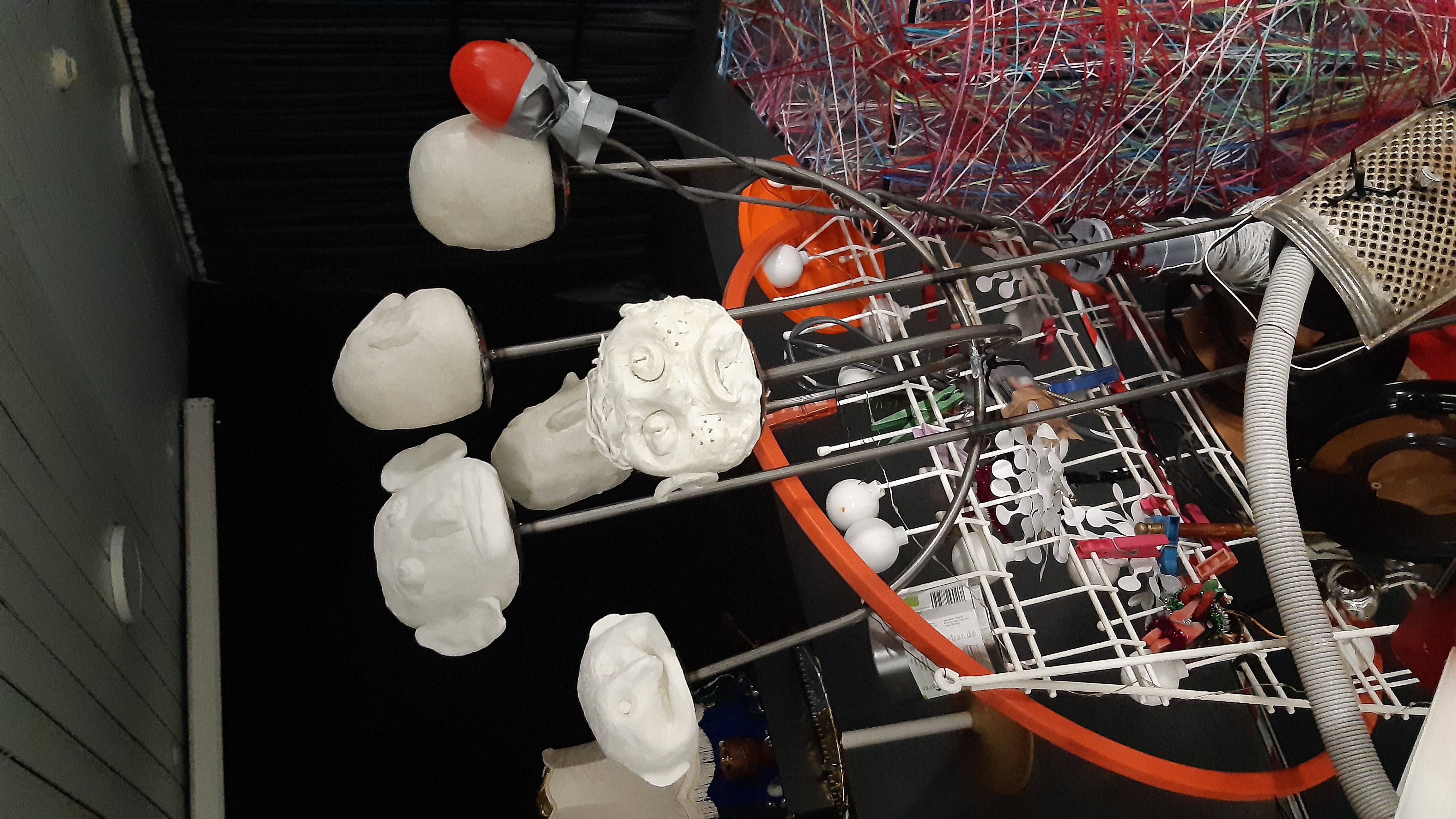 In der ersten Gruppe wurden die Requisiten und das Szenenbild für das Versteck des Schatzes erstellt. Die aus Modelliermasse geformten Köpfe dienten als Schlüssel, welche die Wächter auf Seite treten lassen sollten. Im Schatzraum stellten die selbst erbauten, sich zum Teil bewegenden, abstrakten Skulpturen eine dreiteilige Maschine dar, die den Schatz beherbergte und beschützte. Beim Dreh wurden die Köpfe und die Maschine von ihren Erbauern für die Kamera in Szene sowie in Gang gesetzt. Angeleitet wurde diese Gruppe von der Künstlerin Christine Bretz.