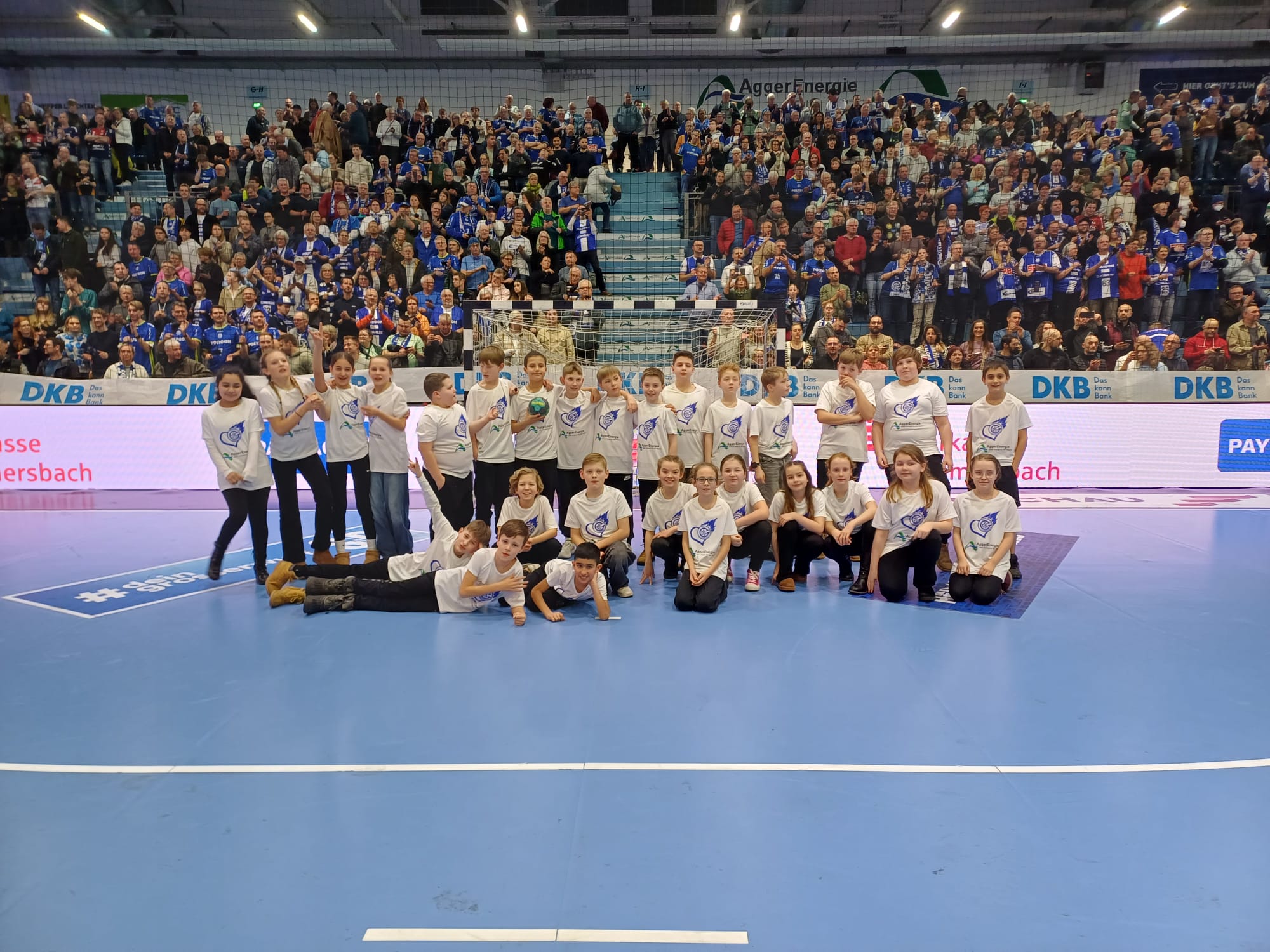 Beim Heimspiel des VFL Gummersbach gegen die SG Flensburg-Handewitt durften die beiden 5er Klassen der Realschule Gummersbach Steinberg erneut die Einlaufkinder stellen.