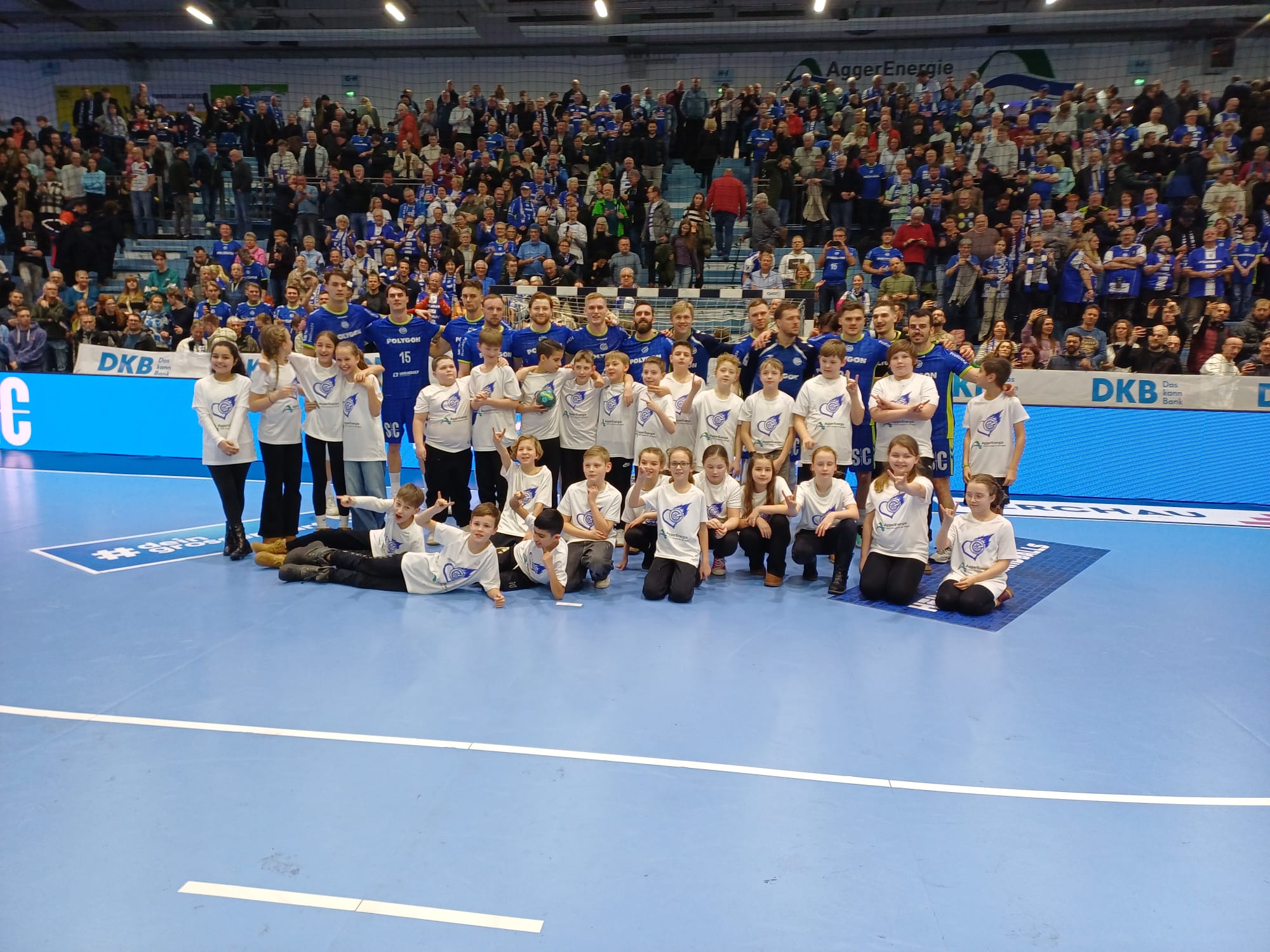 Groß war die Freude und noch größer die Aufregung der Kinder, neben den Handballhünen in die ausverkaufte Schwalbe Arena einlaufen zu dürfen.