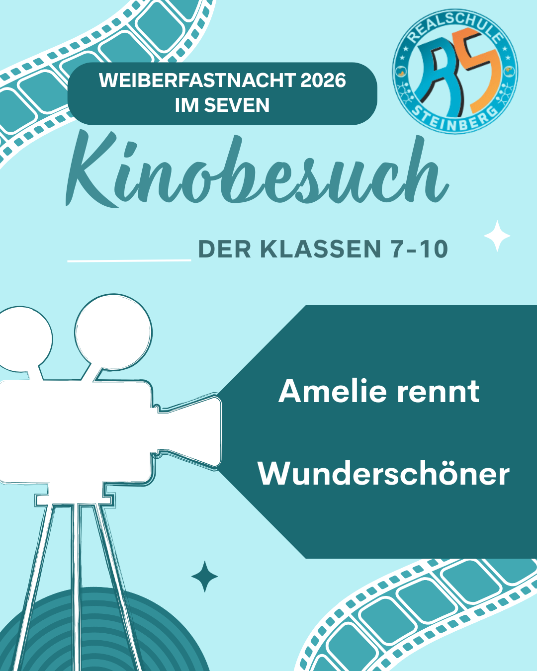 Wie bereits in den Vorjahren besuchten auch in diesem Jahr die Schüler und Schülerinnen mit ihren Klassenlehrern oder Klassenlehreinnen an Weiberfastnacht eine Sonder-Filmvorführung im Gummersbacher Seven Kino. In der ersten großen Pause machten sich die Jahrgänge 7-10 auf den Weg, um sich „Amelie rennt“ (Klasse 7 und 8), sowie „Wunderschöner“ (Klasse 9 und 10) anzusehen.