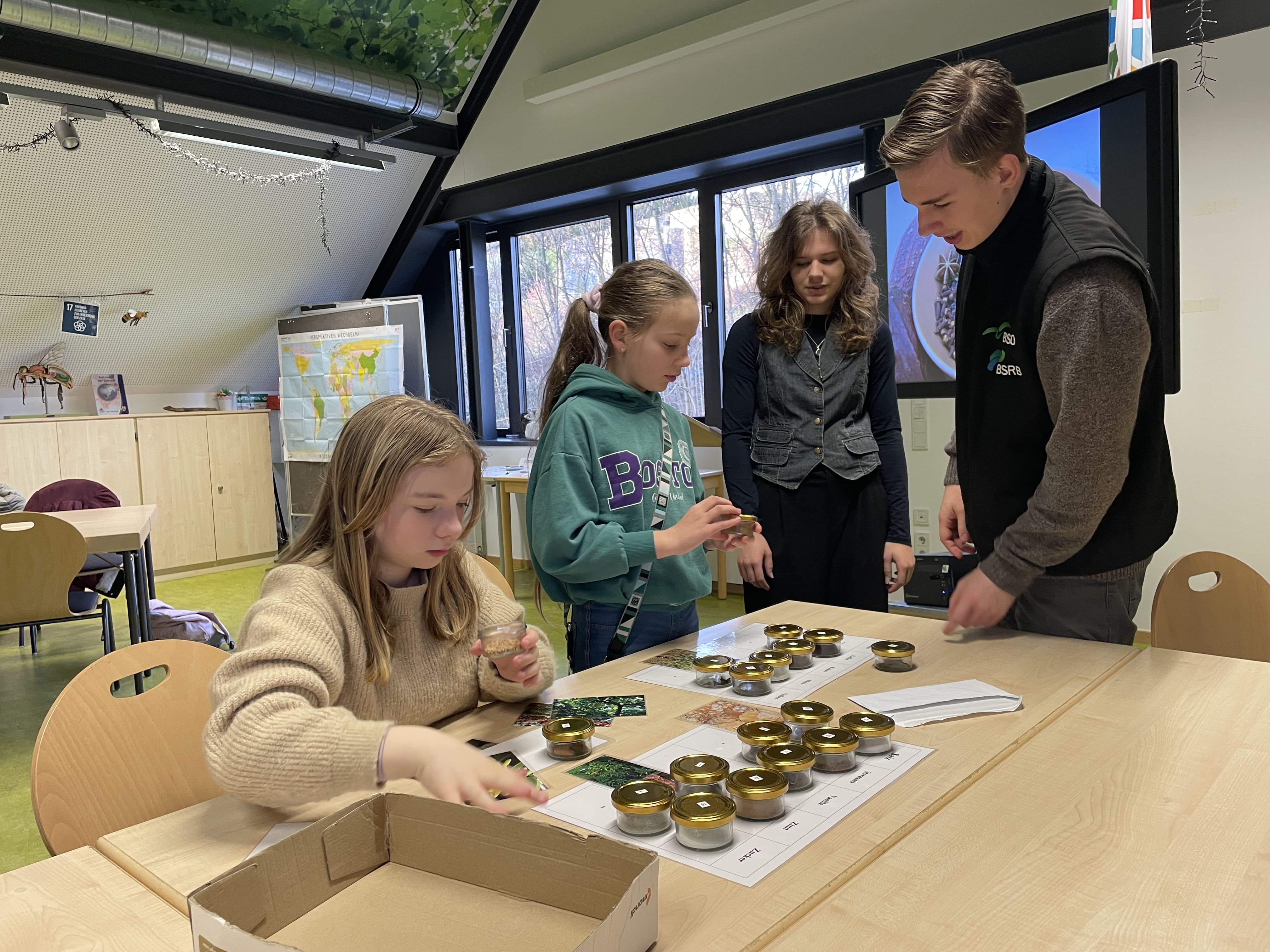 Der zweite Teil stand unter dem Motto „Werde ein Gewürzexperte!“ Die Schüler hatten die Möglichkeit, Experten für ein spezifisches Gewürz zu werden und an verschiedenen Stationen Aufgaben zu meistern. Diese Aufgaben umfassten ein Memory-Spiel, eine Schätzaufgaben, eine Zuordnungsaufgabe. Eine weitere Station bezog sich auf die Herkunft der Gewürze in der Welt. Dabei wurde offensichtlich, dass lediglich das Anis in heimischer Umgebung wächst. Alle anderen weihnachtlichen Gewürze kommen aus tropischem Milieu. Sie sind zu uns weit gereist und kommen beispielsweise aus Madagaskar, Indonesien, Sri Lanka.
