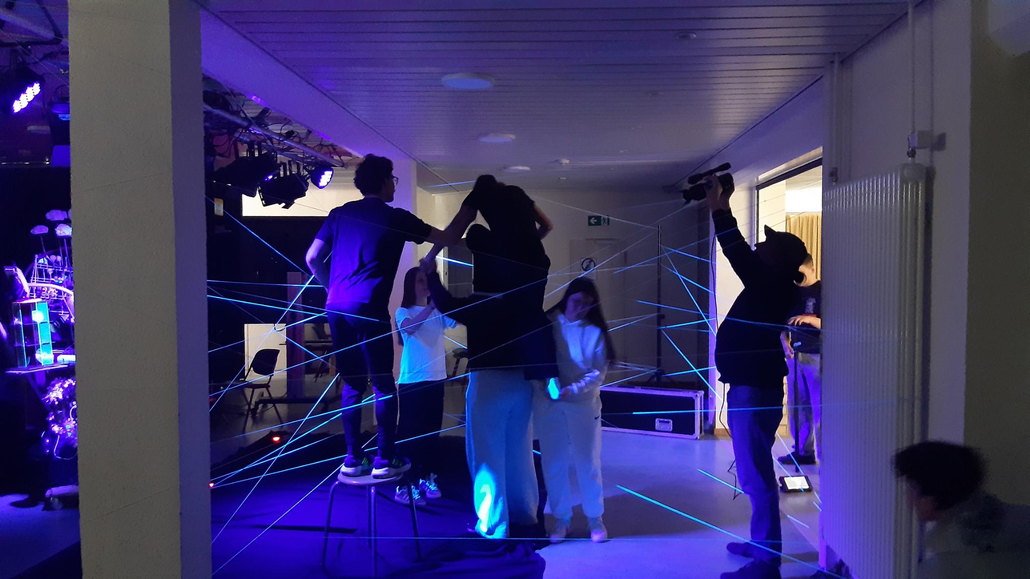 Die zweite Gruppe unter der Leitung der Kunstlehrerinnen Dudszus und Daugy sorgte dafür, dass der Schatz zusätzlich durch Wächter bewacht wurde. Es entstanden lebendige Kunstwerke: Gemälde, Krieger und Elfen, denen der für sie bestimmte Portschlüssel in die ausgestreckte Hand gelegt werden musste, um den Weg zur Maschine freizugeben.