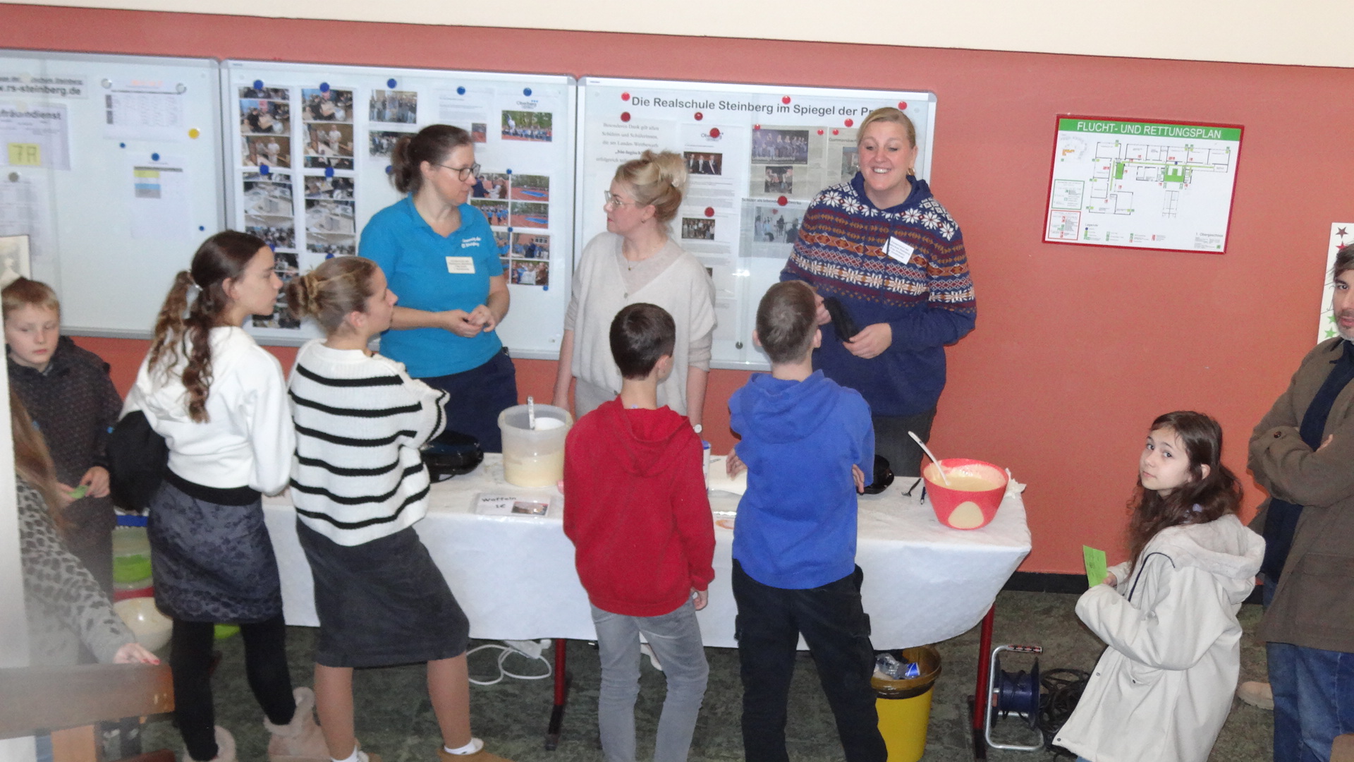 Für das leibliche Wohl der Gäste war bestens gesorgt. Ein umfangreiches Büfett mit Kuchen und herzhaften Speisen lud zum Verweilen ein. Der Förderverein unserer Schule rundete das Angebot mit frisch gebackenen Waffeln ab. Bei frostigen Temperaturen draußen herrschte in den Räumen eine behagliche Stimmung, die Vorfreude auf das bevorstehende Weihnachtsfest weckte.