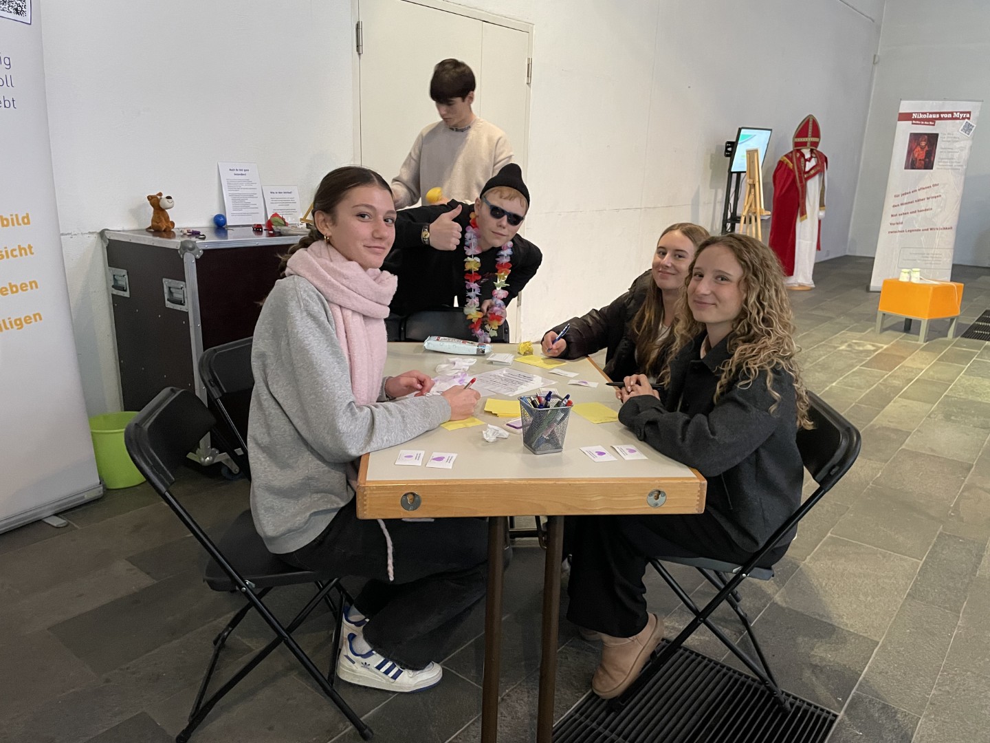 Besonders beeindruckt hat die Station zu Nikolaus von Myra. Nach einem Quiz zum Vorwissen schlüpften die Schüler in seine Rolle, legten das Bischofsgewand mit Mitra und Stola an und erfuhren per Audio und Video aus seinem Leben. Die Aufforderung "Sei heute ein Helfer!" regte dazu an, im eigenen Umfeld Gutes zu tun.