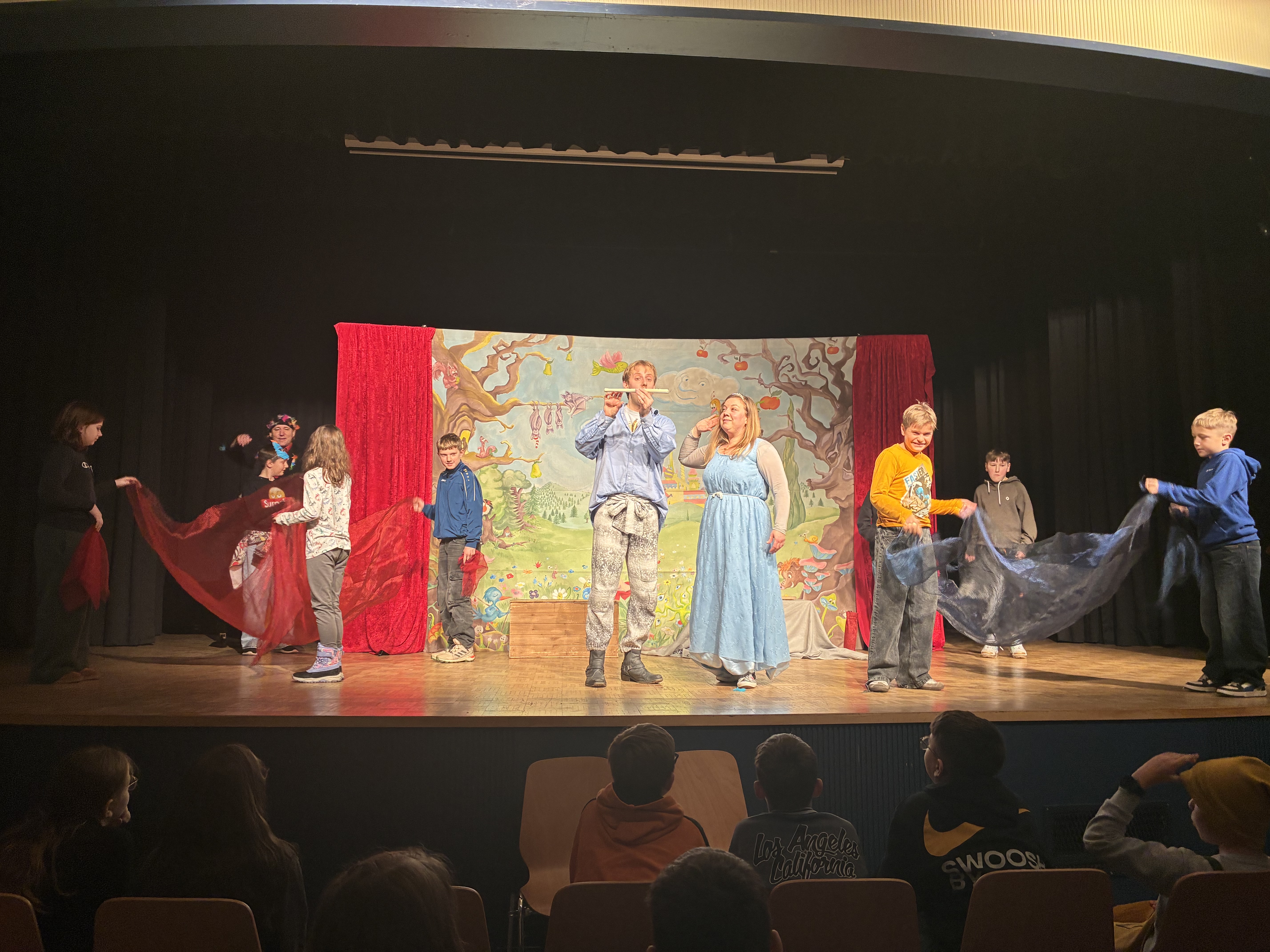 Die interaktive Aufführung, bei der viel gelacht wurde, erzählte die Geschichte von Tamino, der mit Hilfe einer Zauberflöte und des Vogelfängers Papageno seine geliebte Pamina befreit. Nach bestandenen Prüfungen findet die Oper ihr glückliches Ende mit den Paaren Tamino/Pamina und Papageno/Papagena.
