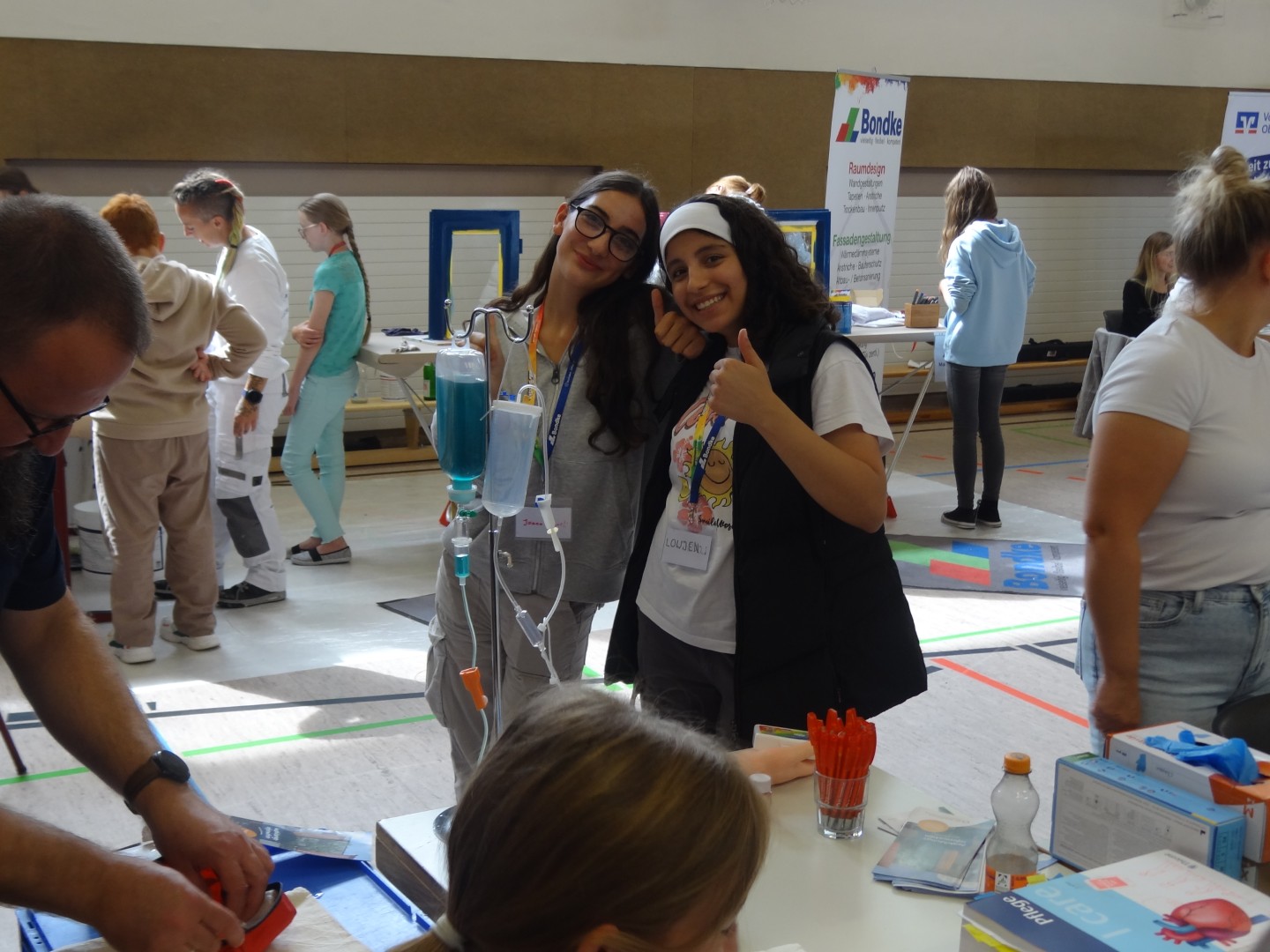 In der Sporthalle und auf dem Schulhof fanden jeweils 20-minütige handlungsorientierte Praxisübungen aus unterschiedlichen Branchen statt.